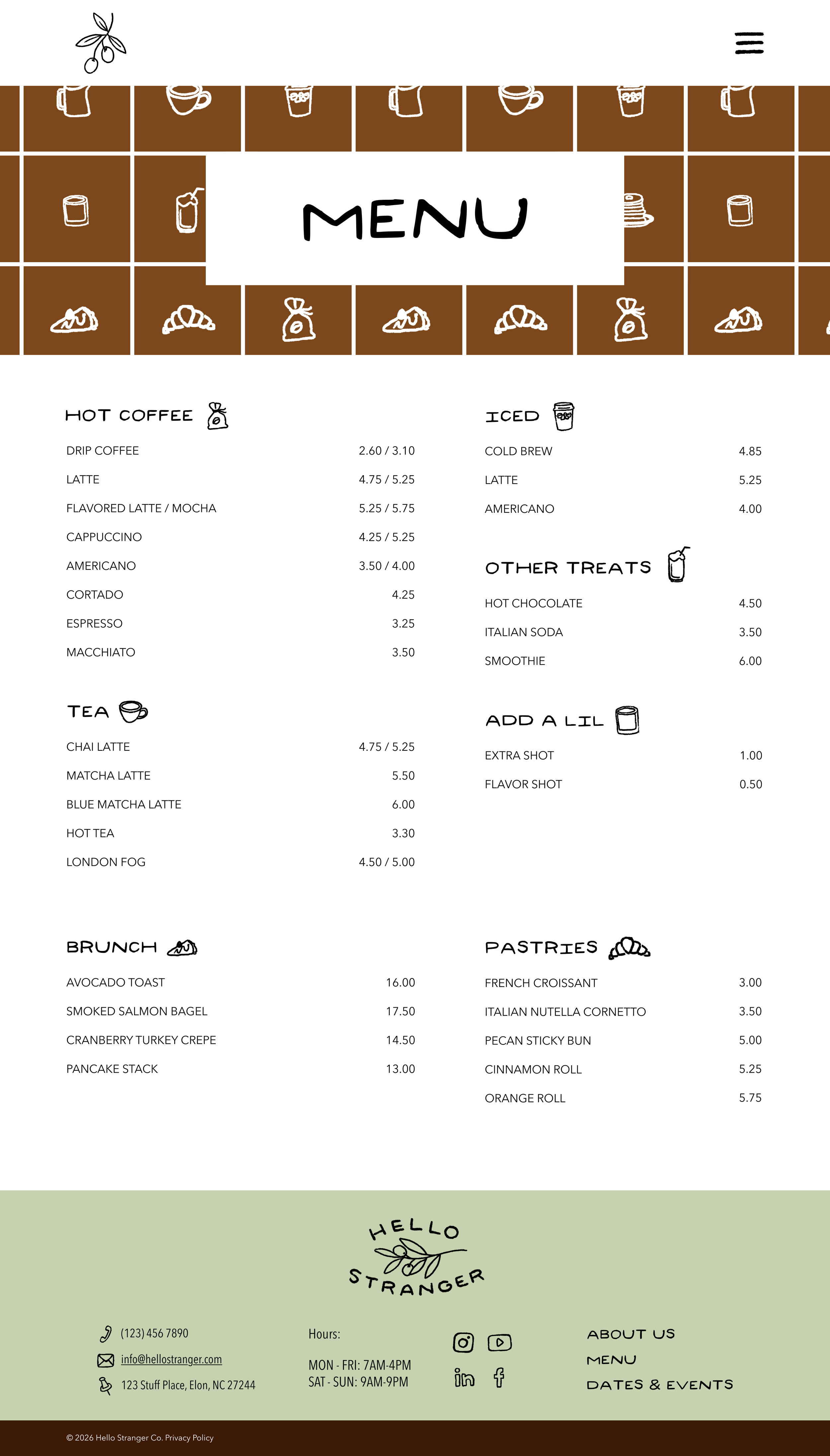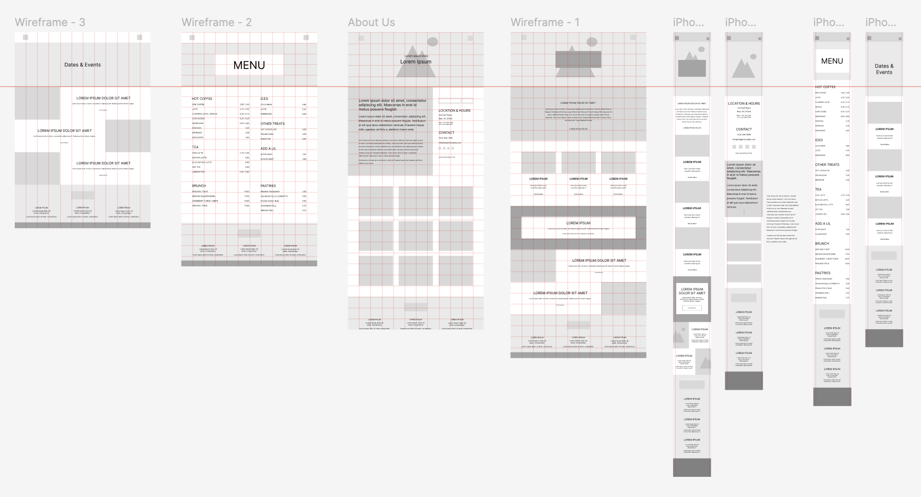 I began with high quality wireframes in Figma, taking inspiration from other cafe sites and menus sourced from Pinterest. I created the logo lockup and main heading font in Procreate.