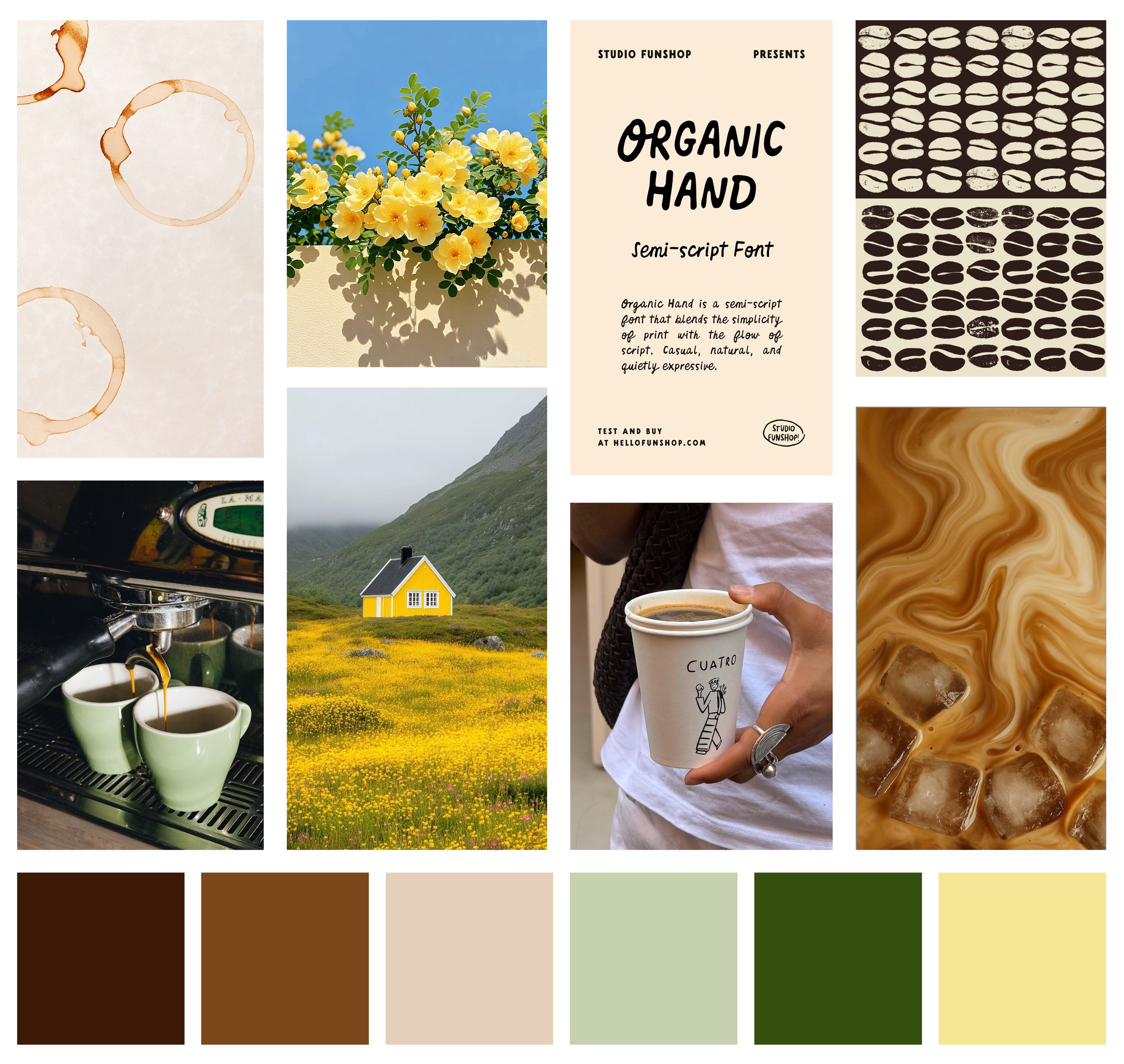 For their branding guide, I began with moodboarding. Hello Stranger called for deeply grounded colors and typography - elements that show the brand is connected to the earth and all the people who live on it.