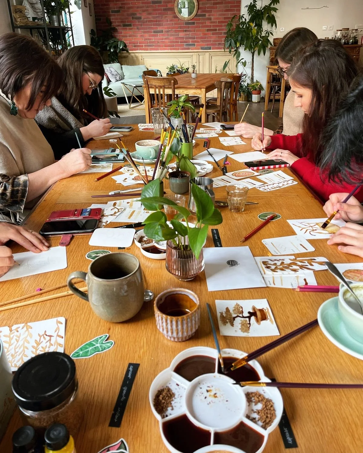 The brown reminds viewers of dirt and earth connection - grounding as well as the grounds of the coffee brewed.